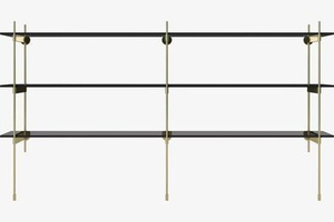 Regał Bolia Rod kombinacja 18 - czarne szkło i stal pokryta mosiądzem